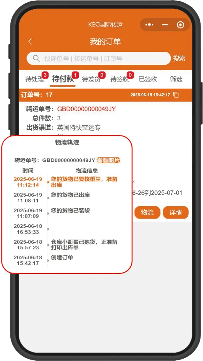 「KEC國際轉運」下載 APP